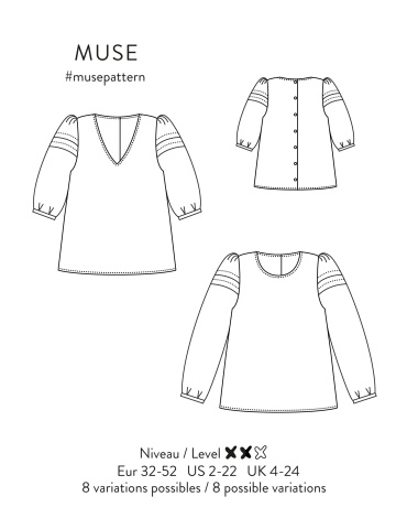 Patron pochette et pdf. Blouse légèrement cintrée à l'encolure ronde, à agrémenter ou non d'un volant froncé. Patte de boutonnage et option volant...