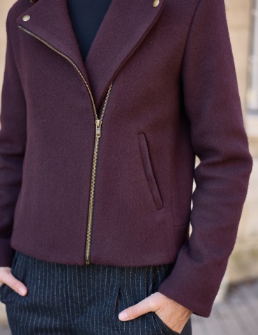 Veste zippée reprenant les codes du perfecto: fermeture à glissière croisée et col orné de boutons pressions (en option). Plusieurs découpes sur le côté et au dos rendent sa coupe particulièrement flatteuse. Poches paysannes en option. Veste entièrement doublée pour une finition impeccable.