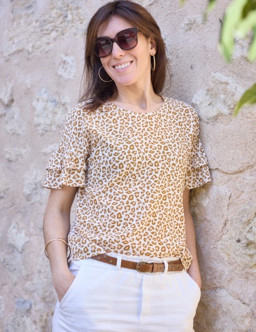 - Version viscose léo : T38, portée avec un pantalon EQUILIBRE
